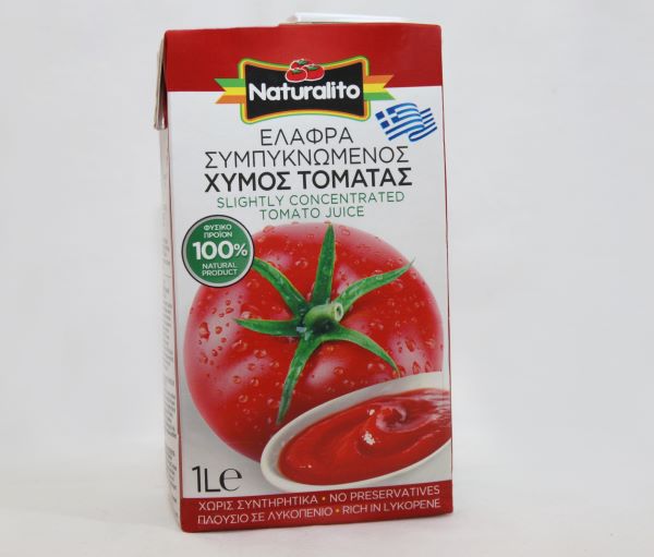 Ο ελαφρά συμπυκνωμένος χυμός τομάτας Naturalito, παράγεται και συσκευάζεται με τις πιο σύγχρονες μεθόδους παραγωγής, αποκλειστικά από τομάτες της Θεσσαλίας. Ένα προϊόν χωρίς συντηρητικά…για ελαφριά κουζίνα.
